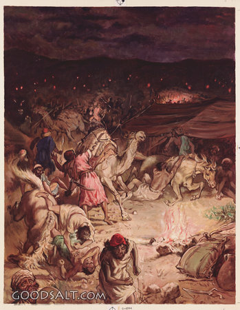 The Sword of the Lord and of Gideon Judges 7 Judges 8 lord, testament, old, ruth, conquest, joshua, panic, gideon, midianites, camp, sword, judges, William Brassey Hole, 00734 PROJECTION - License for PowerPoint™ PRINT – buy a print of this picture; optional frame Bible Hub |
