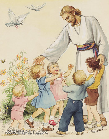 Jesus Blessing the Children Matthew 19:13-15 Mark 10:13-16 Luke 18:15-17 Jesus, testament, blessing, new, children, friends, Dorothy Handsaker-Scott, 00866 PROJECTION - License for PowerPoint™ PRINT – buy a print of this picture; optional frame Bible Hub |