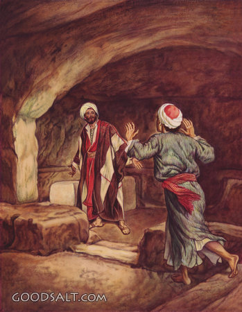 Peter and John Hasten to the Sepulchre Luke 24:12 John 20:3-10 empty, Jesus, testament, john, tomb, peter, new, resurrection, sepulchre, William Brassey Hole, Hasten, 00941 PROJECTION - License for PowerPoint™ PRINT – buy a print of this picture; optional frame Bible Hub |