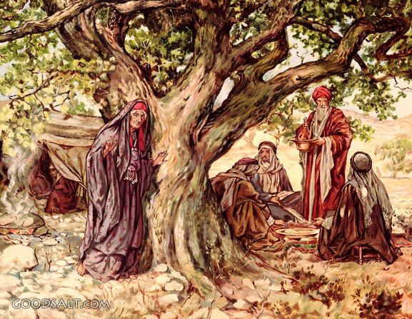 Sarah Overhearing the Renewal of the Promise Genesis 18 testament, renewal, law, promise, old, abraham, visit, sarah, genesis, angels, Deuteronomy, William Brassey Hole, Overhears, Overhearing, 01010 PROJECTION - License for PowerPoint™ PRINT – buy a print of this picture; optional frame Bible Hub |