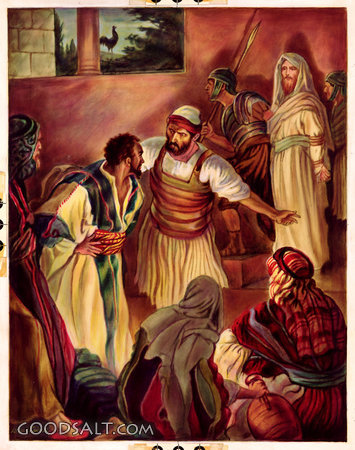 Peter's Denial Matthew 26:69-75 Mark 14:66-72 Luke 22:54-62 John 18:15-18 John 18:25-27 christ, Jesus, testament, denial, denies, peter, new, simon, disciples, Arthur Twidle, 01087 PROJECTION - License for PowerPoint™ PRINT – buy a print of this picture; optional frame Bible Hub |