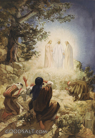 Jesus is Transfigured before Three Disciples Matthew 17:1-13 Mark 9:1-13 Luke 9:28-36 Jesus, testament, three, new, disciples, miracles, William Brassey Hole, Transfigures, Transfigured, 01091 PROJECTION - License for PowerPoint™ PRINT – buy a print of this picture; optional frame Bible Hub |