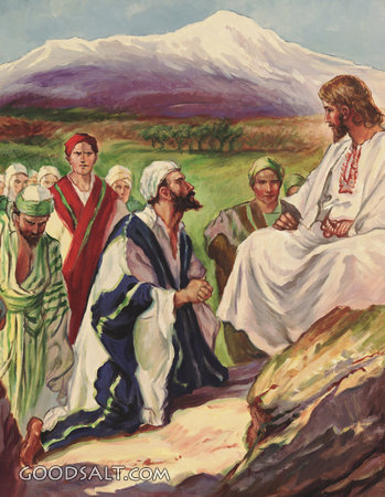 Thou Art the Christ Matthew 16:13-20 Mark 8:27-30 Luke 9:18-21 christ, Jesus, testament, peter, new, simon, disciples, Arthur Twidle, Thou, Confesses, 01164 PROJECTION - License for PowerPoint™ PRINT – buy a print of this picture; optional frame Bible Hub |