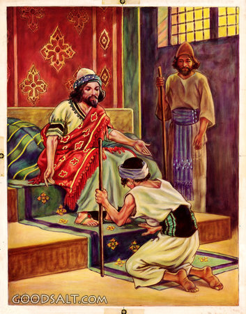 David's Kindness to Mephibosheth 2 Samuel 9 testament, old, samuel, kingdom, united, mephibosheth, david, kindness, kings, Aids, Thomas Harris Robinson, 01198 PROJECTION - License for PowerPoint™ PRINT – buy a print of this picture; optional frame Bible Hub |