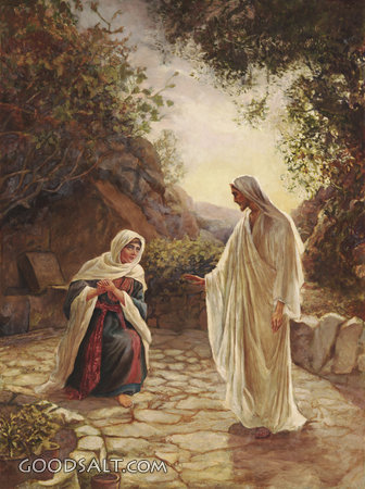 Jesus Reveals Himself to Mary Magdalene Mark 16:9-11 John 20:14-18 Jesus, testament, tomb, mary, new, magdalene, garden, resurrection, easter, William Brassey Hole, Appearances, Reveals, 01287 PROJECTION - License for PowerPoint™ PRINT – buy a print of this picture; optional frame Bible Hub |