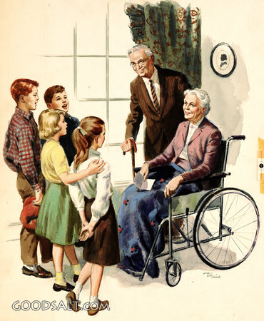 older, nursing, service, church, couple, visiting, home, children, William F. Timmins, 01350