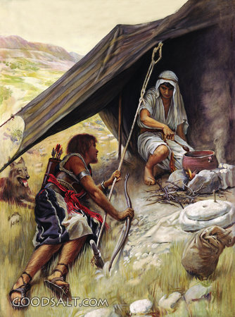 Esau's Birthright Genesis 25 testament, collection, law, old, jacob, birthright, esau, rachel, genesis, providence, Deuteronomy, Harold Copping, Trades, 01374 PROJECTION - License for PowerPoint™ PRINT – buy a print of this picture; optional frame Bible Hub |