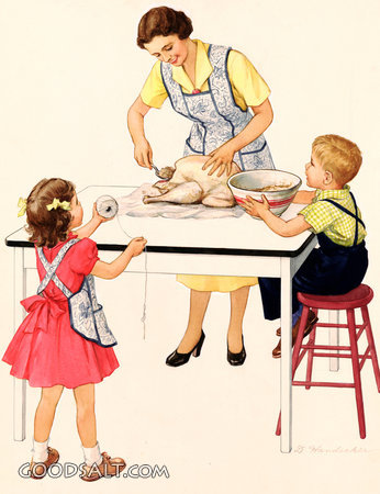 preparing, eat, eating, home, turkey, family, americana, Dorothy Handsaker-Scott, Stuffing, 01382