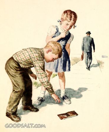 lost, helping, americana, children, outdoors, William F. Timmins, Billfold, 01403
