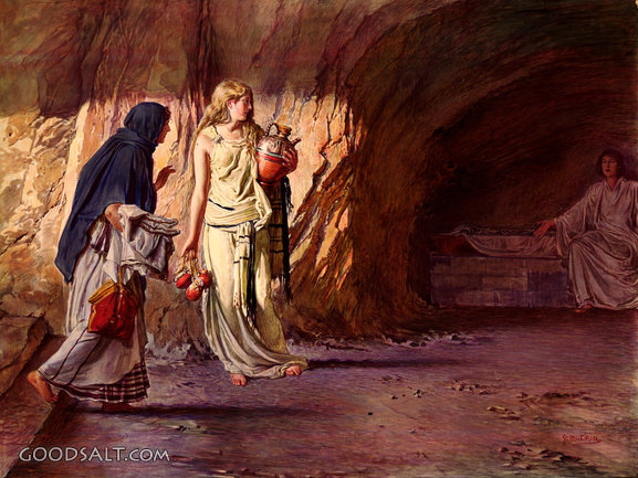 Easter Morn Matthew 28:1-7 Mark 16:1-7 Luke 24:1-8 John 20:11-13 empty, Jesus, testament, tomb, new, resurrection, easter, Fortunino Matania, Morn, 01526 PROJECTION - License for PowerPoint™ PRINT – buy a print of this picture; optional frame Bible Hub |