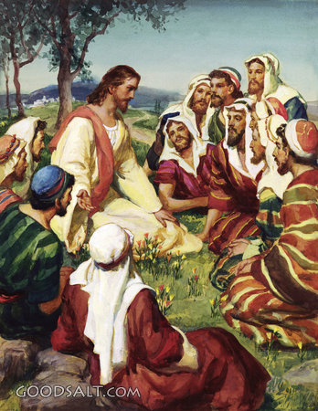 Jesus Teaching Matthew 9:35-38 Matthew 16:21-28 Mark 8:31-33 Luke 9:22-27 Jesus, teaching, testament, collection, new, galilee, outdoors, providence, Teachings, Karl Godwin, 01544 PROJECTION - License for PowerPoint™ PRINT – buy a print of this picture; optional frame Bible Hub |