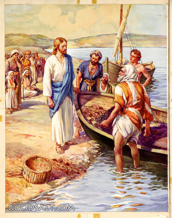 Peter Offering His Boat to Jesus Luke 5:1-11 Jesus, testament, year, see, men, peter, boat, new, fish, offering, boats, disciples, Arthur Ernst Becher, chronological, Popularity, Grows, Urges, 01742 PROJECTION - License for PowerPoint™ PRINT – buy a print of this picture; optional frame Bible Hub |