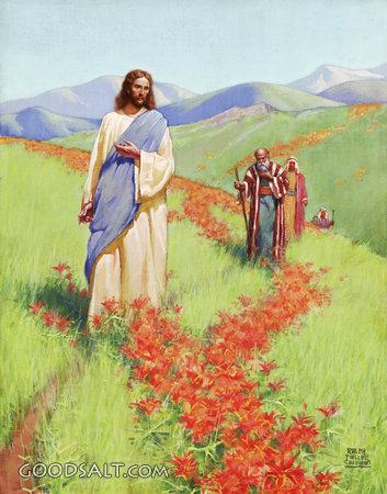 Jesus Walking in Fields Matthew 4:13-17 Matthew 9:35-38 Matthew 12:15-21 Mark 3:7-12 Jesus, testament, new, walking, disciples, fields, Ralph Pallen Coleman, 01853 PROJECTION - License for PowerPoint™ PRINT – buy a print of this picture; optional frame Bible Hub |