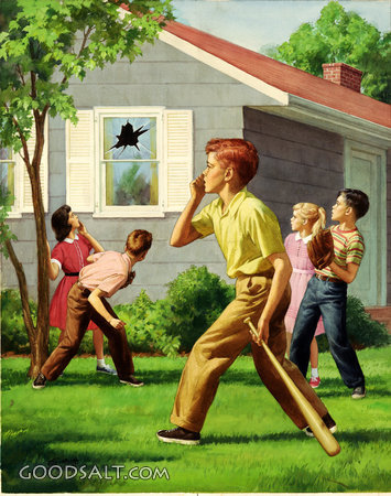 truth, playing, telling, broken, americana, window, baseball, children, outdoors, Games, Griffith Foxley, 01905