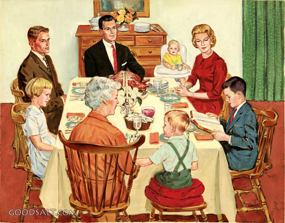 Family Group at Thanksgiving Dinner 1 Thessalonians 5:18 thanksgiving, prayer, home, praying, mealtime, group, family, americana, dinner, William F. Timmins, 01971 PROJECTION - License for PowerPoint™ PRINT – buy a print of this picture; optional frame Bible Hub |