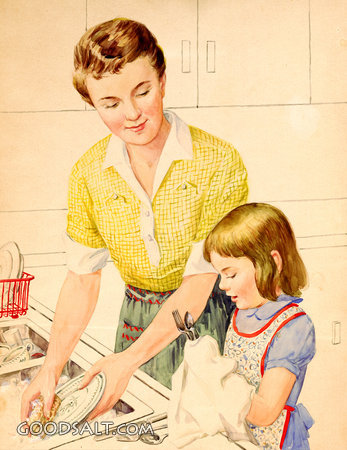 helping, cleaning, home, family, mother, americana, Eleanora Madsen Johnson, Dishes, 01993