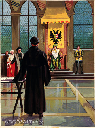 Martin Luther Before Emperor Matthew 10:18 Mark 13:9 Luke 21:12 protestant, history, church, emperor, luther, martin, unrest, reformation, William F. Timmins, 01997 PROJECTION - License for PowerPoint™ PRINT – buy a print of this picture; optional frame Bible Hub |