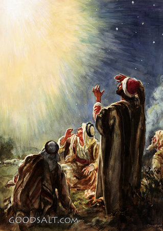 Shepherds on Hillside at Bethlehem Luke 2:8-20 angel, Jesus, birth, testament, hillside, early, life, ministry, new, bethlehem, shepherds, Henry Coller, 02003 PROJECTION - License for PowerPoint™ PRINT – buy a print of this picture; optional frame Bible Hub |