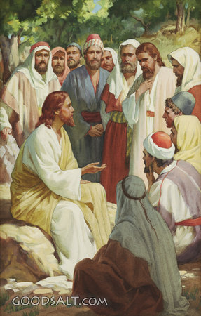 Jesus Teaching Disciples to Pray Matthew 10:5 Mark 6:7-13 Luke 9:1-6 Luke 12:1-12 Matthew 16:21-28 Mark 8:31-33 Luke 9:22-27 Matthew 17:22-23 Mark 9:30-32 Luke 9:44-45 Luke 10:1-16 Jesus, teaching, testament, pray, new, disciples, Griffith Foxley, 02078 PROJECTION - License for PowerPoint™ PRINT – buy a print of this picture; optional frame Bible Hub |