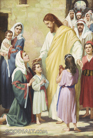 Jesus Blessing the Children Matthew 19:13-15 Mark 10:13-16 Luke 18:15-17 Jesus, testament, blessing, new, children, disciples, friends, Griffith Foxley, 02079 PROJECTION - License for PowerPoint™ PRINT – buy a print of this picture; optional frame Bible Hub |