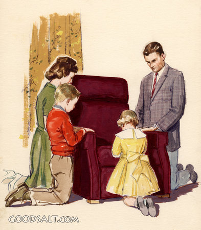 kneeling, prayer, home, praying, devotional, family, americana, Foster Caddell, 02302