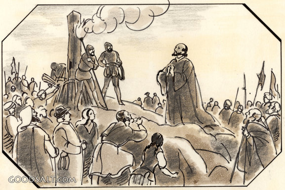 John Hus / Huss Matthew 5:11 Matthew 5:44 Matthew 23:34 Luke 11:49 Luke 21:12 John 15:20 protestant, history, burned, church, martyr, john, unrest, stake, reformation, Hus, Huss, William Plummer, 03707A PROJECTION - License for PowerPoint™ PRINT – buy a print of this picture; optional frame Bible Hub |