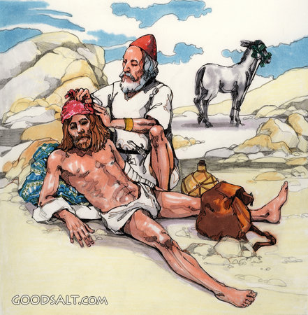 Conversation Cube: Stories in the Bible Luke 10:25-37 Jesus, stories, testament, samaritan, conversation, bible, new, good, parables, cube, Teachings, Leslie Morrill, 04984A PROJECTION - License for PowerPoint™ PRINT – buy a print of this picture; optional frame Bible Hub |