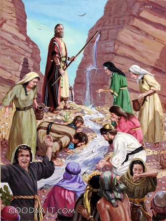 Moses Smiting the Rock Exodus 17 Numbers 20 water, god, testament, rock, law, old, exodus, moses, sinai, genesis, Hebrews, john steel, Deuteronomy, Provides, Smiting, 05049 PROJECTION - License for PowerPoint™ PRINT – buy a print of this picture; optional frame Bible Hub |