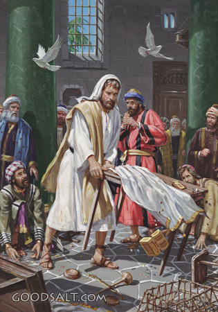 Jesus Cleansing the Temple John 2:13-25 Matthew 21:12-17 Mark 11:15-19 Luke 19:45-48 week, Jesus, testament, temple, new, cleansing, passion, john steel, Cleanses, 05053 PROJECTION - License for PowerPoint™ PRINT – buy a print of this picture; optional frame Bible Hub |