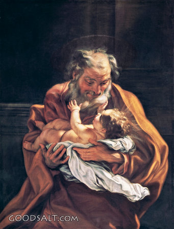St. Joseph and the Infant Child Luke 2:1-7 nativity, Jesus, birth, testament, early, child, baby, infant, joseph, mary, life, ministry, new, Giovanni Battista Gauli, 05244 PROJECTION - License for PowerPoint™ PRINT – buy a print of this picture; optional frame Bible Hub |
