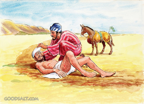 Good Samaritan: Bandaging Wounds Luke 10:25-37 testament, samaritan, bible, new, bandaging, good, times, wounds, Pictures, Miscellany, Allen Johnson, Sequence, 05562 PROJECTION - License for PowerPoint™ PRINT – buy a print of this picture; optional frame Bible Hub |