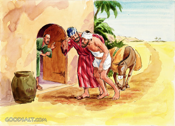Good Samaritan: Arriving at Inn Luke 10:25-37 testament, samaritan, bible, inn, new, good, times, Pictures, Miscellany, Allen Johnson, Sequence, Arriving, 05564 PROJECTION - License for PowerPoint™ PRINT – buy a print of this picture; optional frame Bible Hub |