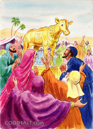 Worship of the Golden Calf Exodus 32 testament, law, old, worship, exodus, golden, aaron, sinai, calf, genesis, Hebrews, Deuteronomy, Makes, Allen Johnson, 05641 PROJECTION - License for PowerPoint™ PRINT – buy a print of this picture; optional frame Bible Hub |