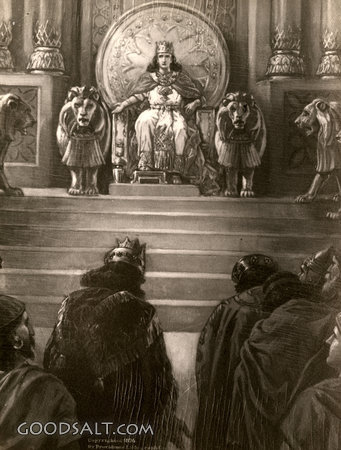 Solomon's Wealth and Wisdom 1 Kings 4 testament, old, samuel, kingdom, united, wisdom, wealth, solomon, rules, kings, William Fredericks, Wisely, D00262 PROJECTION - License for PowerPoint™ PRINT – buy a print of this picture; optional frame Bible Hub |