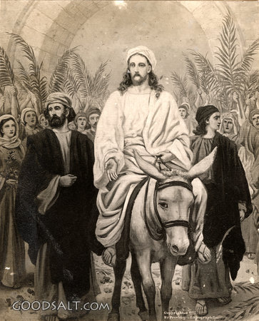 The Triumphal Entry Matthew 21:1-11 Mark 11:1-11 Luke 19:28-44 John 12:12-19 week, Jesus, entry, testament, jerusalem, new, triumphal, easter, passion, William Fredericks, Enters, D00309 PROJECTION - License for PowerPoint™ PRINT – buy a print of this picture; optional frame Bible Hub |