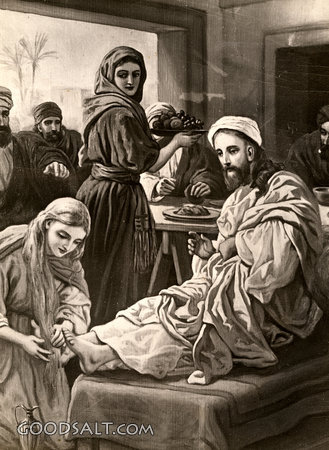 Anointing in Bethany Luke 7:36-50 Jesus, sinful, testament, year, woman, feet, new, anointing, Bethany, William Fredericks, Anoints, chronological, Popularity, Grows, D00335 PROJECTION - License for PowerPoint™ PRINT – buy a print of this picture; optional frame Bible Hub |