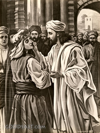 Healing the Blind Man Matthew 12:22-37 Mark 3:20-30 Luke 11:14-28 John 9:1-41 blind, Jesus, healing, testament, man, new, extra, Charles E. Moore, Healings, D00531 PROJECTION - License for PowerPoint™ PRINT – buy a print of this picture; optional frame Bible Hub |