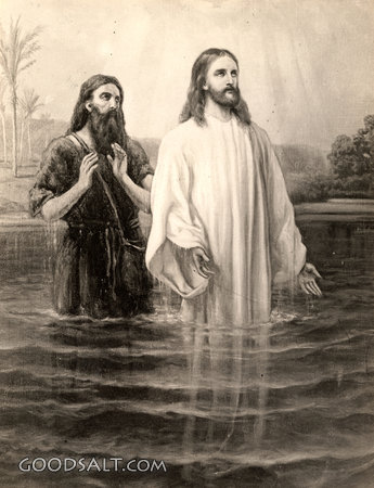 The Baptism of Jesus Matthew 3:13-17 Mark 1:9-11 Luke 3:21-23 baptism, Jesus, testament, early, life, ministry, new, jordan, river, William Fredericks, D00575 PROJECTION - License for PowerPoint™ PRINT – buy a print of this picture; optional frame Bible Hub |