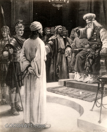 Trial of Jesus Matthew 26:57-68 Mark 14:53-65 Luke 22:66-71 John 18:24 week, Jesus, testament, trial, new, sanhedrin, easter, passion, abused, William Fredericks, Interrogated, Scourged, D00660 PROJECTION - License for PowerPoint™ PRINT – buy a print of this picture; optional frame Bible Hub |