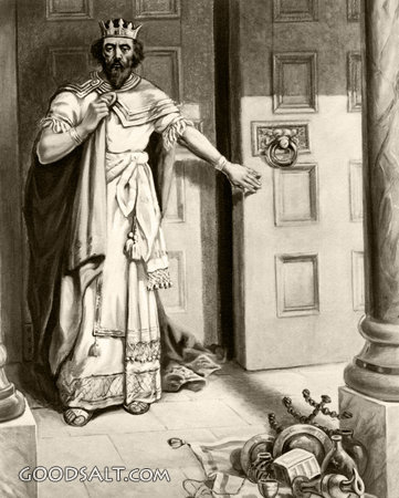 Ahaz, the Faithless King 2 Kings 16 2 Chronicles 28 testament, collection, divided, old, kingdom, king, faithless, kings, providence, Charles E. Moore, Ahaz, D00828 PROJECTION - License for PowerPoint™ PRINT – buy a print of this picture; optional frame Bible Hub |