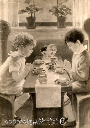 grace, praying, americana, children, Indoors, Saying, Florence Liley Young, D01170