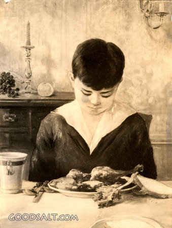 god, thanking, food, praying, americana, children, boys, Indoors, H. Armstrong (photo) Roberts, D01218