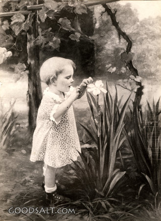nature, iris, child, americana, children, outdoors, flowers, girls, Mrs. William (photo) Durrant, D01240