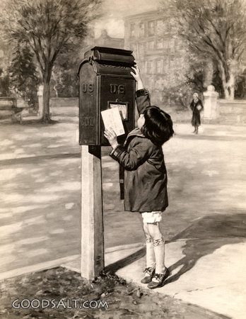 Little Girl Mailing Letter Galatians 6:11 letter, mail, working, girl, getting, americana, little, children, outdoors, H. Armstrong (photo) Roberts, Mailing, D01406 PROJECTION - License for PowerPoint™ PRINT – buy a print of this picture; optional frame Bible Hub |