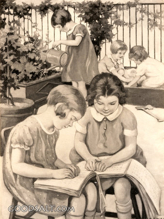 blind, reading, braille, americana, children, girls, Indoors, Katherine R. Wireman, D01525