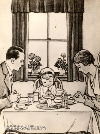 prayer, giving, home, praying, mealtime, family, americana, thanks, Katherine R. Wireman, D01681