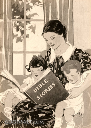 Mother Reading Bible Story to Two Children Deuteronomy 6:6-7 two, reading, story, bible, home, family, mother, americana, children, Gertrude Kay, D01769 PROJECTION - License for PowerPoint™ PRINT – buy a print of this picture; optional frame Bible Hub |