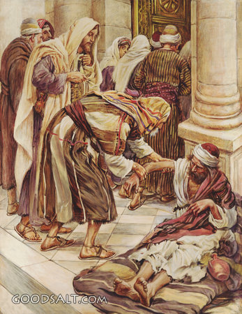 Peter and John at the Beautiful Gate Acts 3 gate, heal, testament, history, church, man, john, peter, jerusalem, new, beautiful, lame, acts, Harold Copping, 01762 PROJECTION - License for PowerPoint™ PRINT – buy a print of this picture; optional frame Bible Hub |