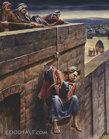 Paul Escapes in a Basket Acts 9 testament, conversion, history, church, new, paul, basket, judea, samaria, damascus, leaves, acts, Escapes, Frank Soltesz, 02242 PROJECTION - License for PowerPoint™ PRINT – buy a print of this picture; optional frame Bible Hub |