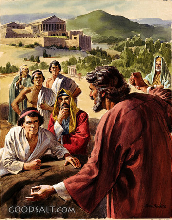 Paul at the Aeropagus Acts 17 testament, journey, history, second, new, paul, missionary, athens, acts, Thessalonica, Berea, Frank Soltesz, Aeropagus, 02254 PROJECTION - License for PowerPoint™ PRINT – buy a print of this picture; optional frame Bible Hub |